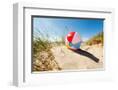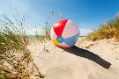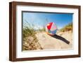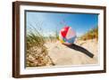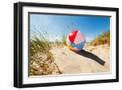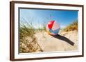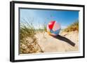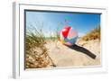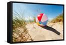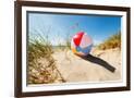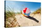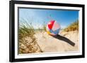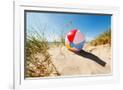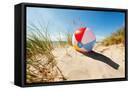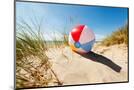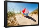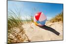 Beach Ball Resting in Sand Dune Concept for Childhood Summer Vacations, Family Holiday and Healthy Photo Print
