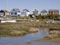 Beach Huts on Mudeford Spit or Sandbank, Christchurch Harbour, Dorset, England, United Kingdom