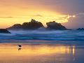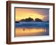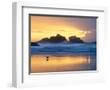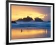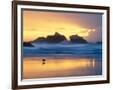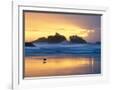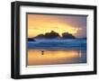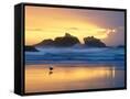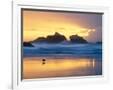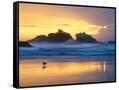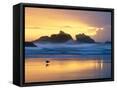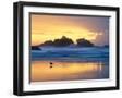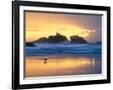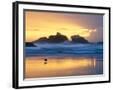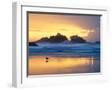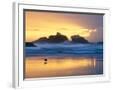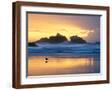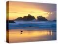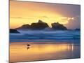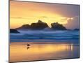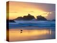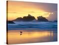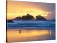 Beach at Sunset with Sea Stacks and Gull, Bandon, Oregon, USA Photo Print