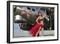 Beautiful 1940's Style Pin-Up Girl Standing under a B-17 Bomber