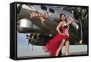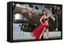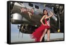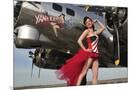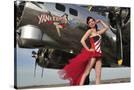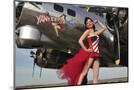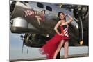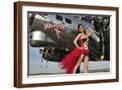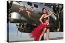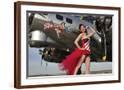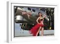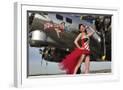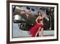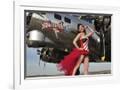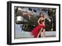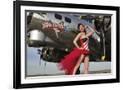 Beautiful 1940's Style Pin-Up Girl Standing under a B-17 Bomber
