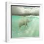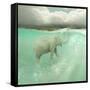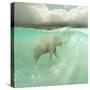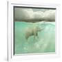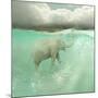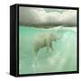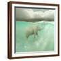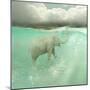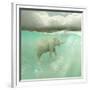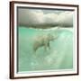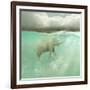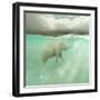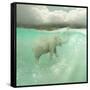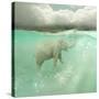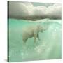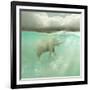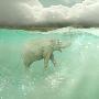 Beautiful Funny Elephant Swimmer Underwater with a Landscape in the Background Photo Print