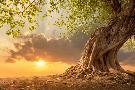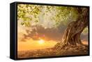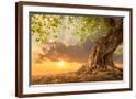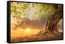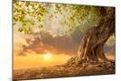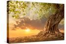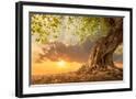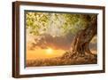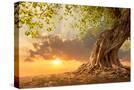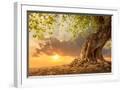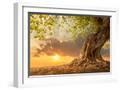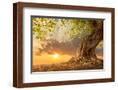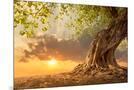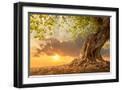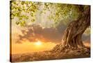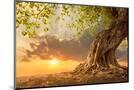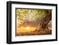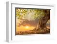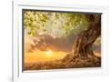 Beautiful Scence of Big Tree with Leaves at Sunset Sky with Clouds. Fantasy Landscape with Free Cop Photo Print