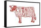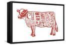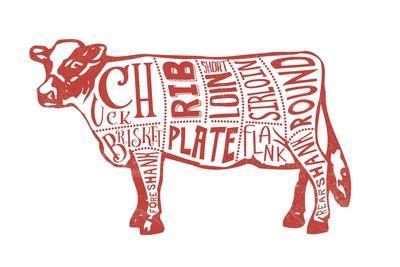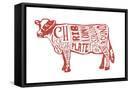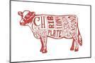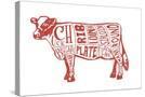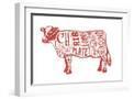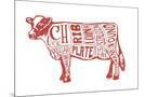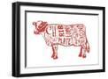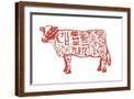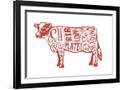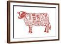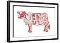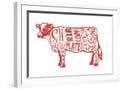 Beef - Butchers Block Meat Cuts - Red Cow on White - Lantern Press Artwork