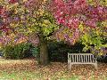 Bench under Liquidambar Tree, Hilliers Gardens, Ampfield, Hampshire, England, United Kingdom