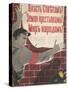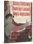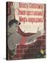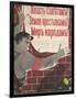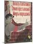 Big Brave Communist Worker Fixes a Poster on a Wall