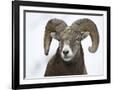 Bighorn Sheep Ram in the Snow, Yellowstone National Park, Wyoming, USA