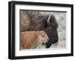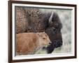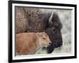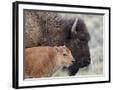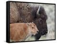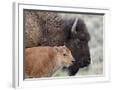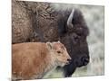 Bison (Bison Bison) Calf in Front of its Mother, Yellowstone National Park, Wyoming, USA