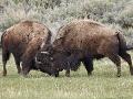 Bison (Bison Bison) Cows Sparring, Yellowstone National Park, Wyoming, USA, North America