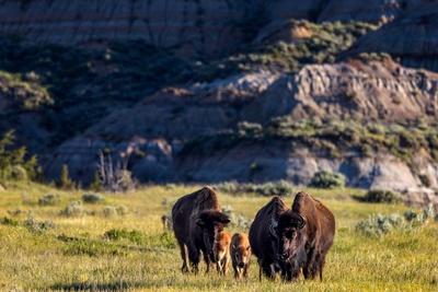 Bison with calves in Theodore Roosevelt National Park, North Dakota, USA.