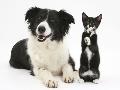 Black-And-White Border Collie Bitch, with Black-And-White Tuxedo Kitten, 10 Weeks