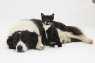 Black-And-White Border Collie Bitch, with Black-And-White Tuxedo Male Kitten, 9 Weeks