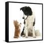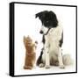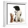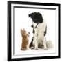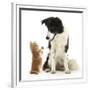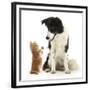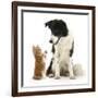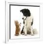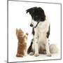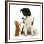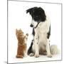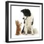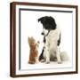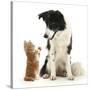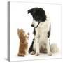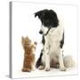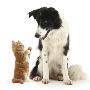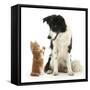 Black-And-White Border Collie Looking at Ginger Kitten