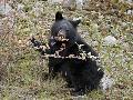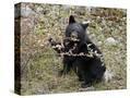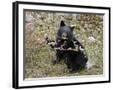 Black Bear (Ursus Americanus) Cub Eating Canadian Gooseberry Berries, Jasper National Park, Alberta