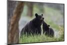 Black Bear (Ursus Americanus), Sow and Yearling Cub, Yellowstone National Park, Wyoming, U.S.A.