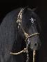 Black Peruvian Paso Stallion in Traditional Peruvian Bridle, Sante Fe, New Mexico, USA