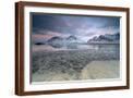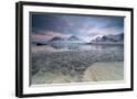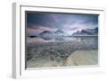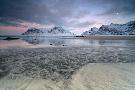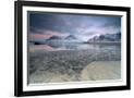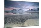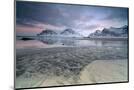Black Sand and Full Moon as Surreal Scenery at Skagsanden Beach, Flakstad, Nordland County