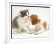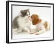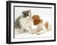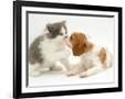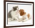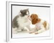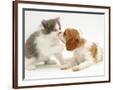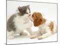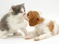 Blenheim Cavalier King Charles Spaniel Puppy Meets Blue Bicolour Kitten