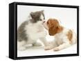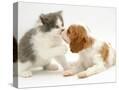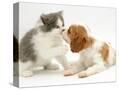 Blenheim Cavalier King Charles Spaniel Puppy Meets Blue Bicolour Kitten