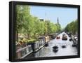 Boats Cruise Along a Canal with the Zuiderkerk Bell-Tower in the Background, Amsterdam, Netherlands Photo Print