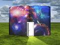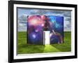 Book With Science Fiction Scene And Open Doorway Of Light Wall Art Print