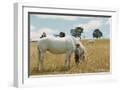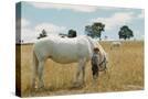 Boy Standing with Horse in a Field
