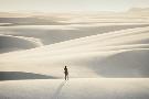 Brazil, Maranhao, Atins, Lencois Maranhenses national park, people standing in the dunes near Atins