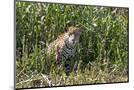 Brazil, The Pantanal, Rio Cuiaba, A female jaguar sits on the river bank watching for prey.