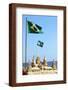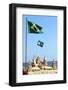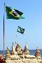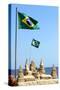 Brazilian Flag On Copacabana Beach In Rio De Janeiro Photo Print