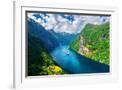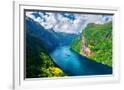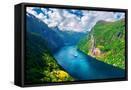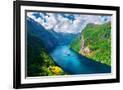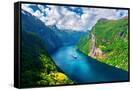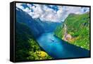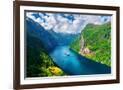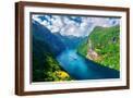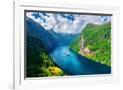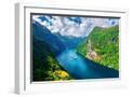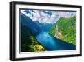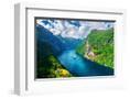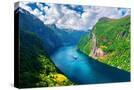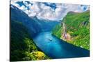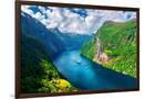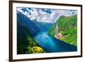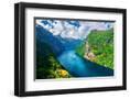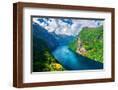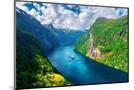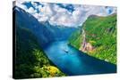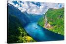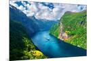 Breathtaking view of Sunnylvsfjorden fjord and famous Seven Sisters waterfalls, near Geiranger vill