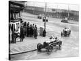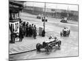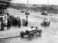 Brian Lewis in an Alfa Romeo Monza in the Mannin Moar race Douglas Isle of Man Lewis won the race Ahead of him is George Eyston also in an Alfa Romeo Monza Eyston finished rd Both Alfas are being pursued by a Bugatti Dunlop banners can be seen