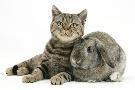 British Shorthair Brown Spotted Cat, Tiger Lily, with Agouti Lop Rabbit