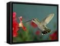 Broad Billed Hummingbird, Female Feeding on Petunia Flower, Arizona, USA