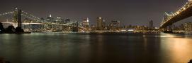 Brooklyn Bridge and Manhattan Bridge across East River at Night, Manhattan, New York City, New Y...