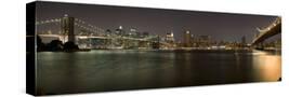 Brooklyn Bridge and Manhattan Bridge across East River at Night, Manhattan, New York City, New Y...