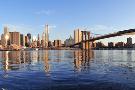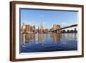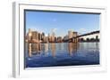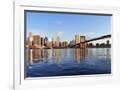 Brooklyn Bridge with Lower Manhattan Skyline Panorama in the Morning with Cloud and River Reflectio Photo Print