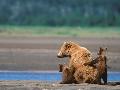 Brown Bear Sow with Cubs, Alaska Peninsula, Katmai National Park, Alaska, USA