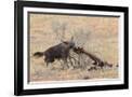 Brown Hyena (Hyaena Brunnea) Scavenging Remains of Lion Kill