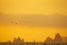 Brown Pelicans and Sea Stacks, Rialto Beach