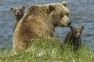 Brown bear sow and cubs, Katmai National Park, Alaska, USA