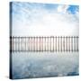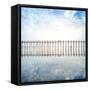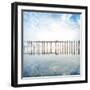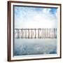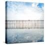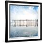 Buddhist Monks Crossing Wooden U Bein Bridge in Myanmar Photo Print