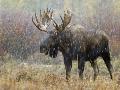 Bull Moose in Snowstorm, Grand Teton National Park, Wyoming, USA