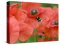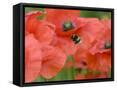 Bumble Bee Flying to Poppy Flower to Gather Pollen, Hertfordshire, England, UK