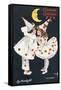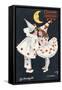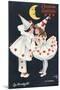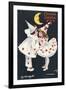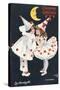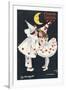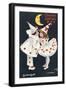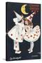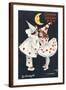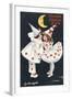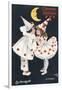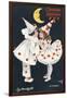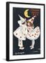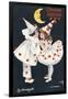 By Moonlight, Boy and Girl in Pierrot Costume Look at Each Other and Like What They See Wall Art Print