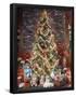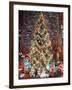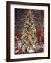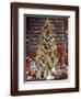 CHRISTMAS TREE WITH DECORATIONS GARLAND LIGHTS TOYS AND PRESENTS UNDER TREE Photo Print