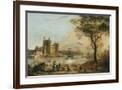 Caernarvon Castle, with a Harper in the Foreground, (bodycolour), Sandby, Paul (17251809) Private Collection Photo Christies Images The Bridgeman Art Library
