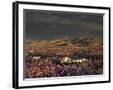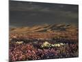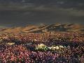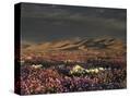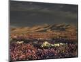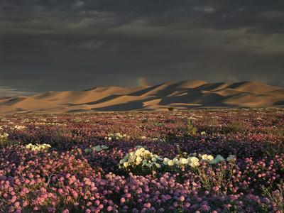 California, Dumont Dunes, a Rainbow Above Dunes and Wildflowers