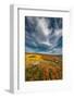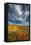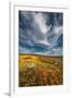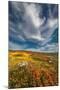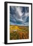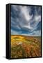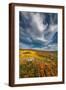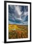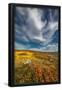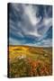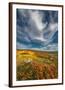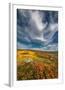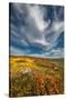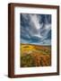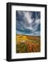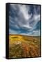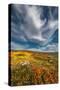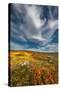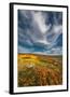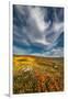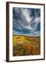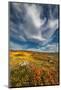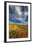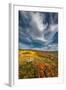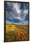California. Fields of California Poppy, Goldfields with clouds, Antelope Valley. Photo Print