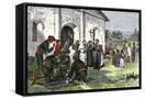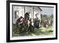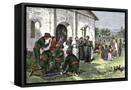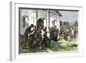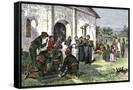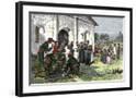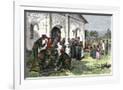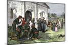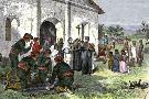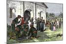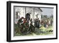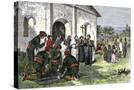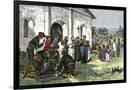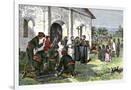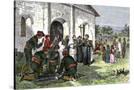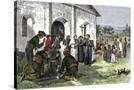 California Mission with Padres, Spanish Soldiers, and Native Americans Giclee Wall Art