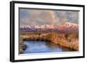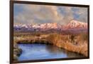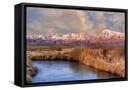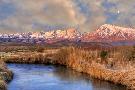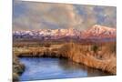 California, Sierra Nevada Mountains. Moon over Mountains and Owens River